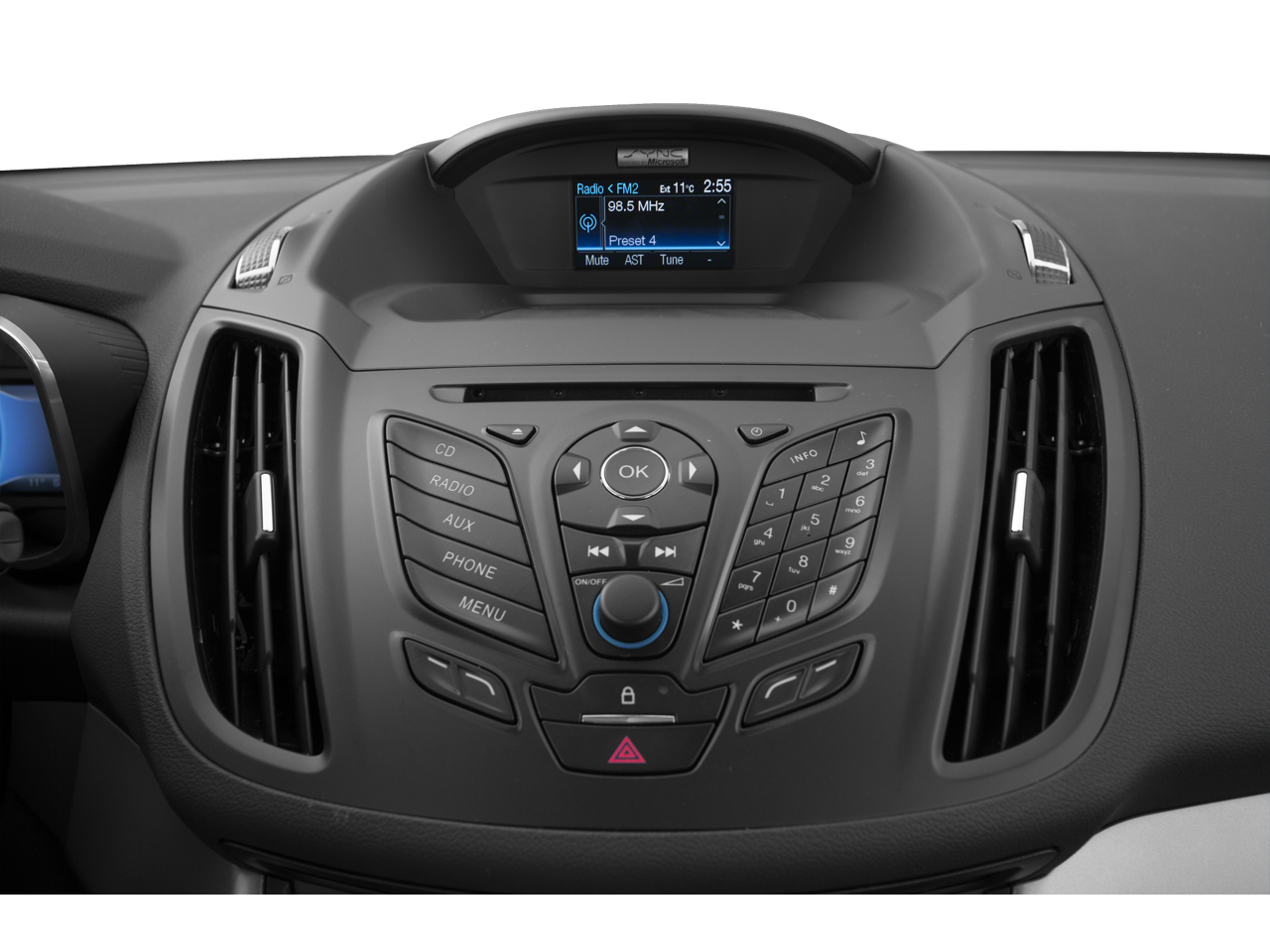 - Radio: AM/FM/CD/MP3 -inc: 6 speakers, aux input jack and USB, SYNC Communications & Entertainment System, 911 Assist, VHR, AppLink, Bluetooth®, steering wheel controls, USB port and auxiliary input jack w/o 202A,203A-inc: Bluetooth®, steering wheel controls, USB port and auxiliary input jack w/202A,203A-inc: media hub with 2 USB ports, audio visual input, and SD card slot, SYNC services, Bluetooth® and steering wheel controls
