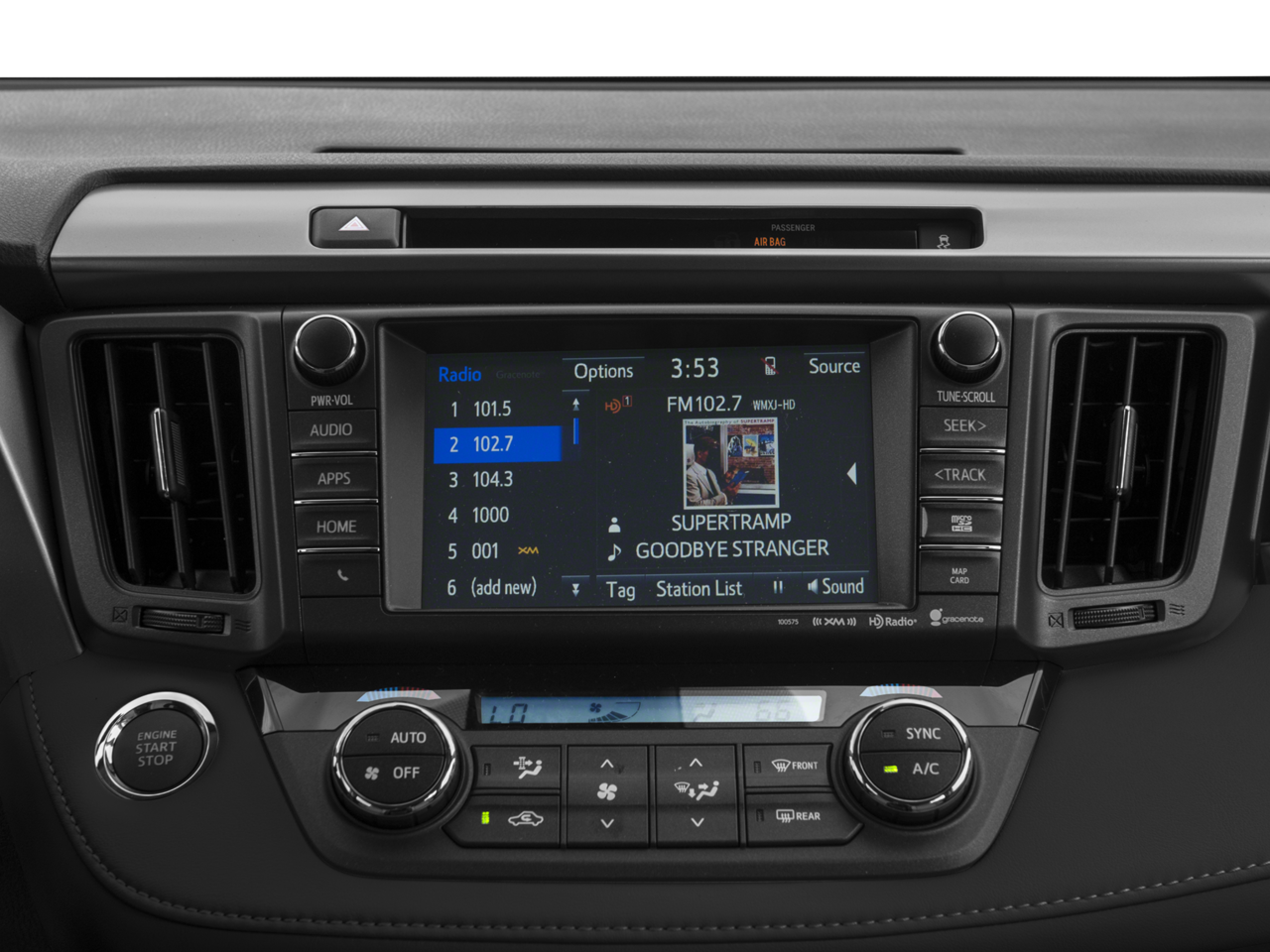 - Radio: Entune Premium Audio with Navigation -inc: AM/FM/MP3/WMA Playback, Entune App Suite, 6 speakers, HD Radio w/iTunes tagging, HD Traffic and Weather, SiriusXM Radio w/90-day trial, 7" touch-screen w/integrated back-up camera display, auxiliary audio jack, USB port w/iPod connectivity and control, vehicle information w/customizable settings, hands-free phone capability, phone book access and music streaming via Bluetooth wireless technology