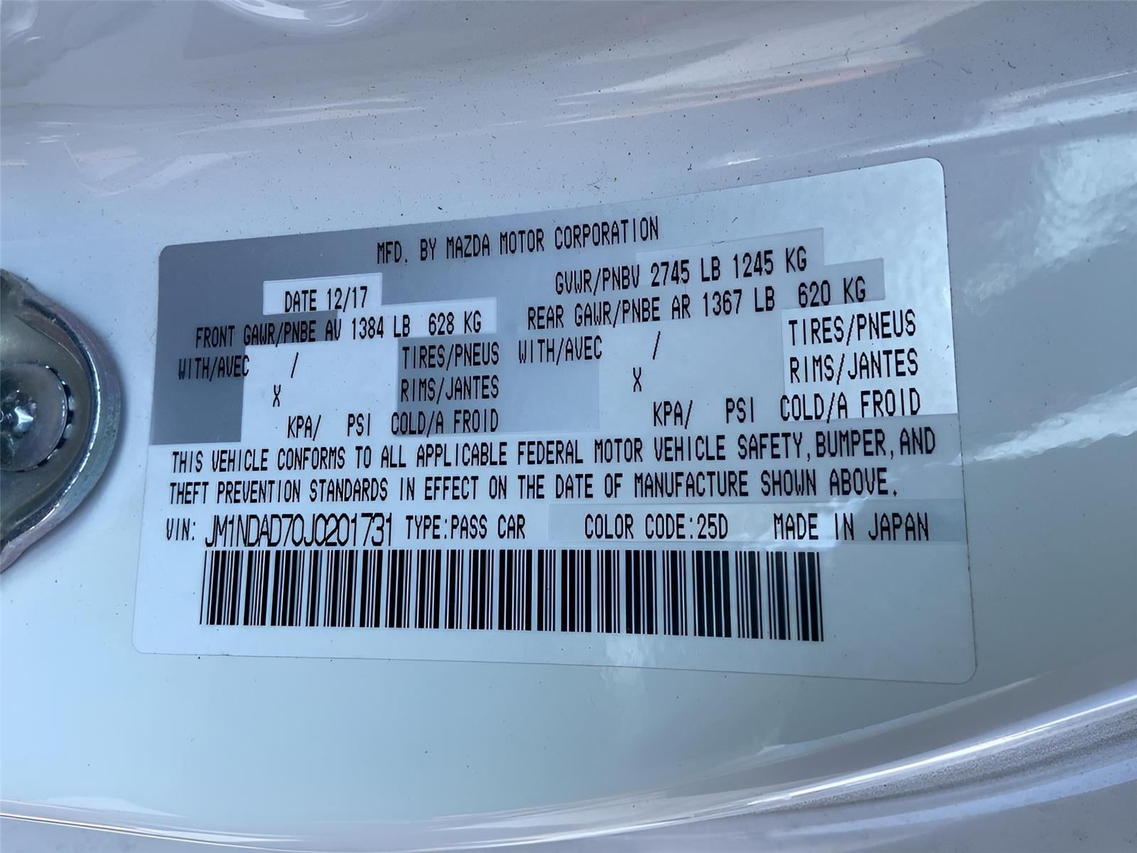 - Vehicle Name: Mazda MX-5 Miata