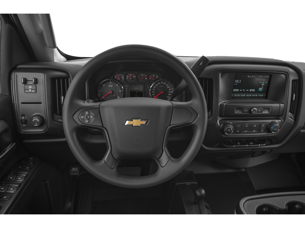 - Audio system, Chevrolet Infotainment System with 7" diagonal color touch-screen, AM/FM stereo with seek-and-scan and digital clock, includes Bluetooth® streaming audio for music and select phones.