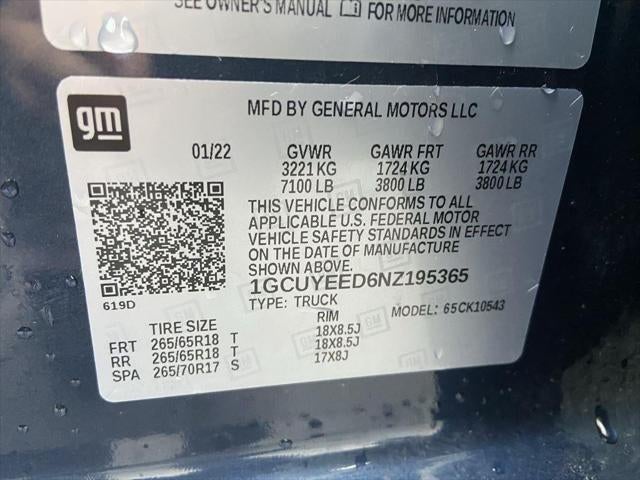 EMISSIONS, CONNECTICUT, DELAWARE, MAINE, MARYLAND, MASSACHUSETTS, NEW JERSEY, NEW YORK, OREGON, PENNSYLVANIA, RHODE ISLAND, VERMONT AND WASHINGTON STATE REQUIREMENTS, ENGINE, 5.3L ECOTEC3 V8, TRANSMISSION, 8-SPEED AUTOMATIC, ELECTRONICALLY CONTROLLED, GVWR, 7100 LBS. (3221 KG), REAR AXLE, 3.23 RATIO, WHEELS, 18"" X 8.5"" (45.7 CM X 21.6 CM) BRIGHT SILVER PAINTED ALUMINUM, TIRES, 265/65R18SL ALL-TERRAIN, BLACKWALL, TIRE, SPARE 265/70R17SL ALL-SEASON, BLACKWALL, NORTHSKY BLUE METALLIC, SEATS, FRONT 40/20/40 SPLIT-BENCH, JET BLACK, CLOTH SEAT TRIM, AUDIO SYSTEM, CHEVROLET INFOTAINMENT 3 SYSTEM, Z71 OFF-ROAD PACKAGE, HILL DESCENT CONTROL, TRANSFER CASE, TWO-SPEED, AIR FILTER, HEAVY-DUTY, SKID PLATES, EXHAUST, DUAL WITH POLISHED OUTLETS, LPO, MOLDED SPLASH GUARDS, BLACK, LICENSE PLATE KIT, FRONT, NOT EQUIPPED WITH HEATED OR VENTILATED FRONT SEATS, SEE DEALER FOR DETAILS, NOT EQUIPPED WITH HEATED STEERING WHEEL, SEE DEALER FOR DETAILS